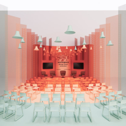 The design is inspired from “speakers,” both as voices and objects. Floating forms and color gradients echo sound waves, guiding focus to the stage. Transparent boundaries create an immersive world, amplifying the experience of engaging speakers and drawing the audience into their stories, highlighting connection, creativity, and collective inspiration. Designed by Casper Schwarz Architects. Partners include FacilityLinq. Suppliers are Cecoceco, MOMO Rugs, Kvadrat, Andreu World, Vitra and Teamwork Interiors.