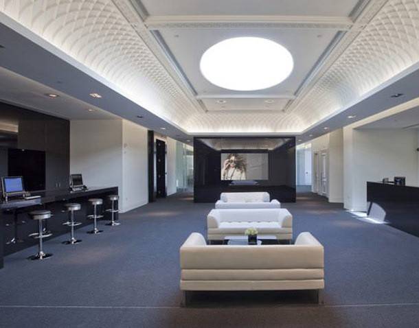 Firms working in the fashion industry most evidently see their offices as an extension of their retail outlets. However, fans of the movie Zoolander will be delighted to note that the headquarters of Fendi are described as ‘an iconic example of fascist architecture’. Giorgio Armani has used its famously muted grey colour palette in its monolithic interior and the result is something that evokes the Holocaust Tower at the Jewish Museum in Berlin. Not good.