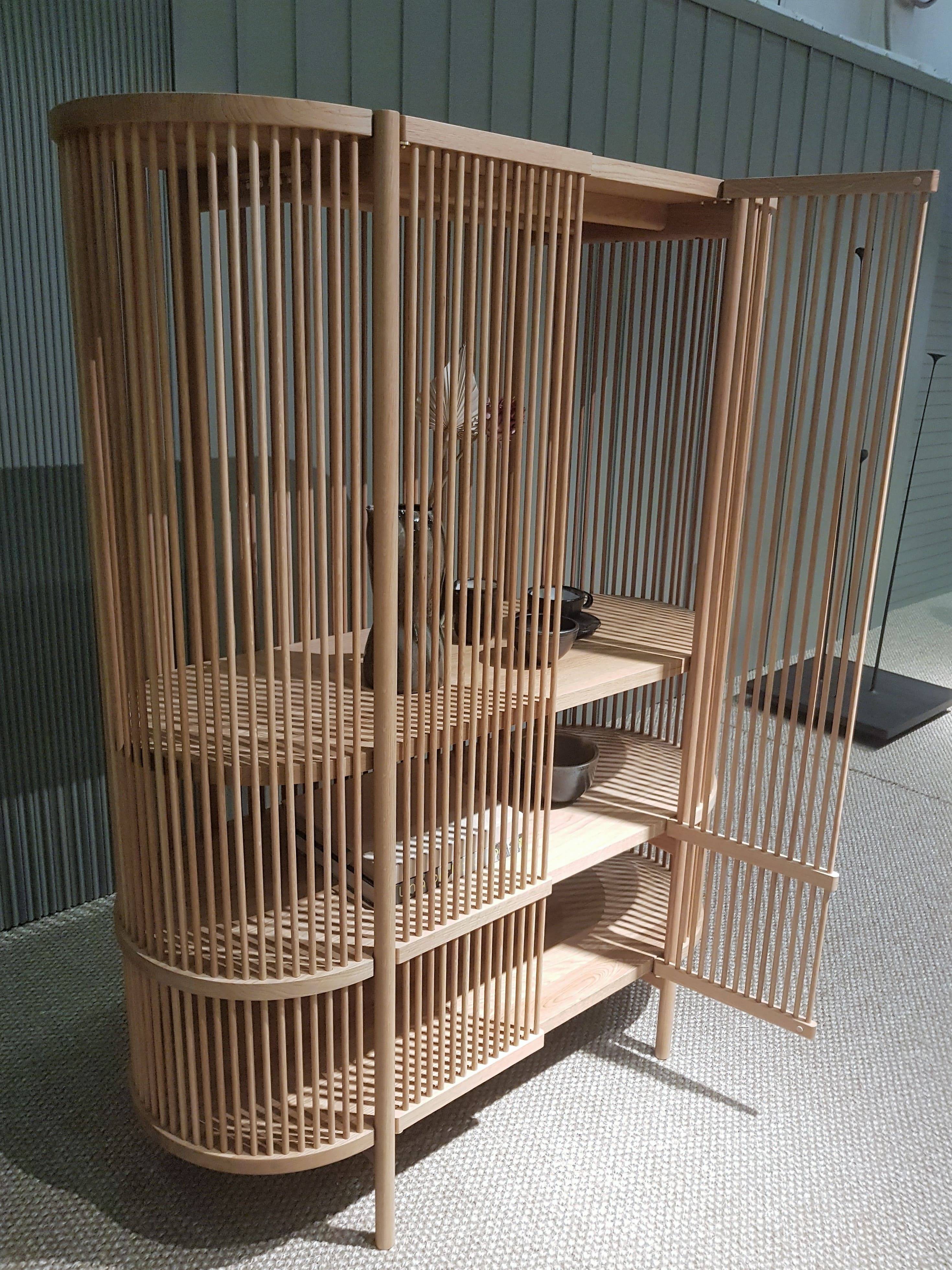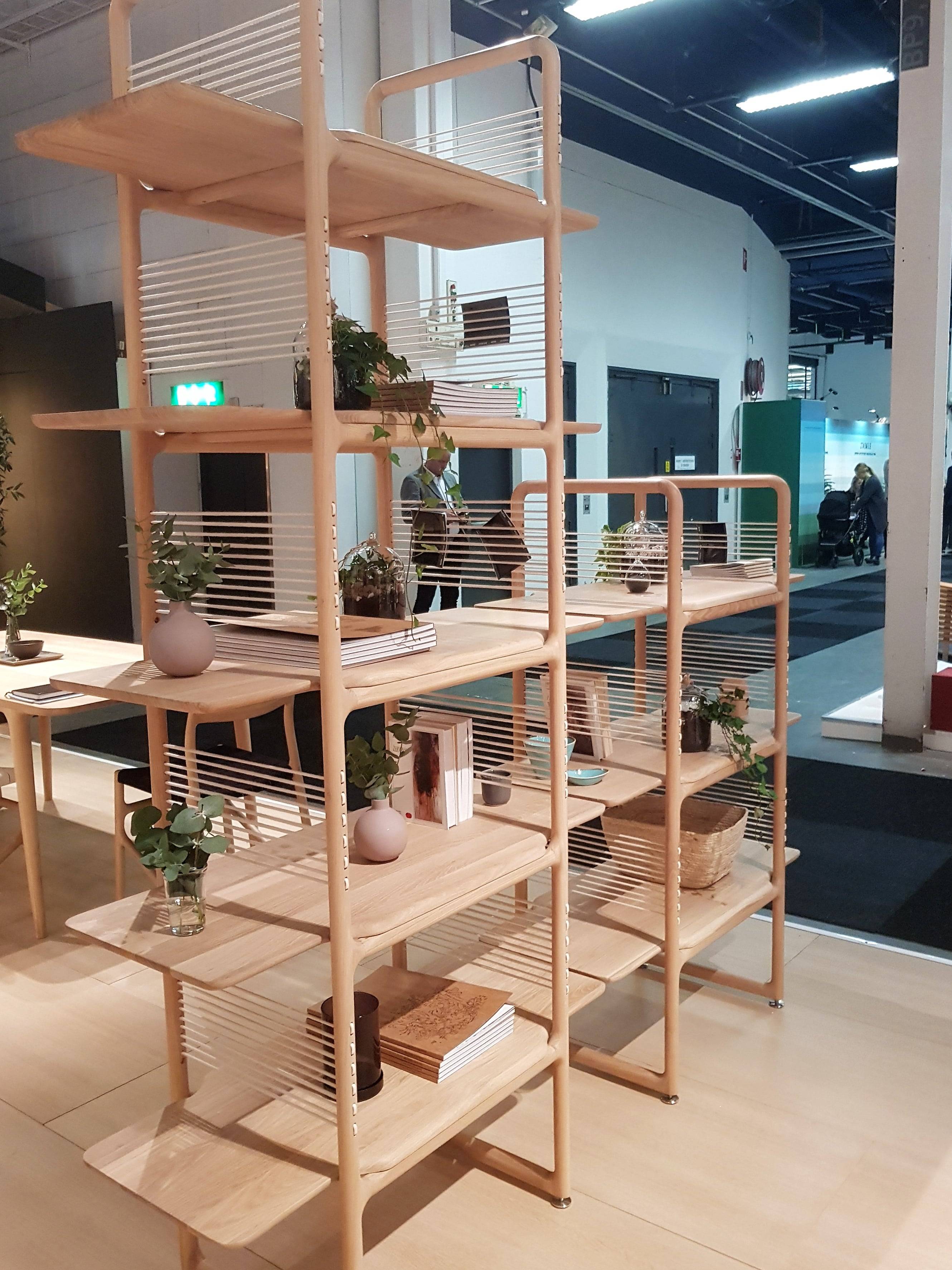 Another open shelving system was shown by Gazzda from Sarajevo, Bosnia. Muse, described as a room divider, designed by Salih Teskeredži?, was beautifully made from solid oak. Artek, a member of the Vitr group of companies, showed another approach to space division.