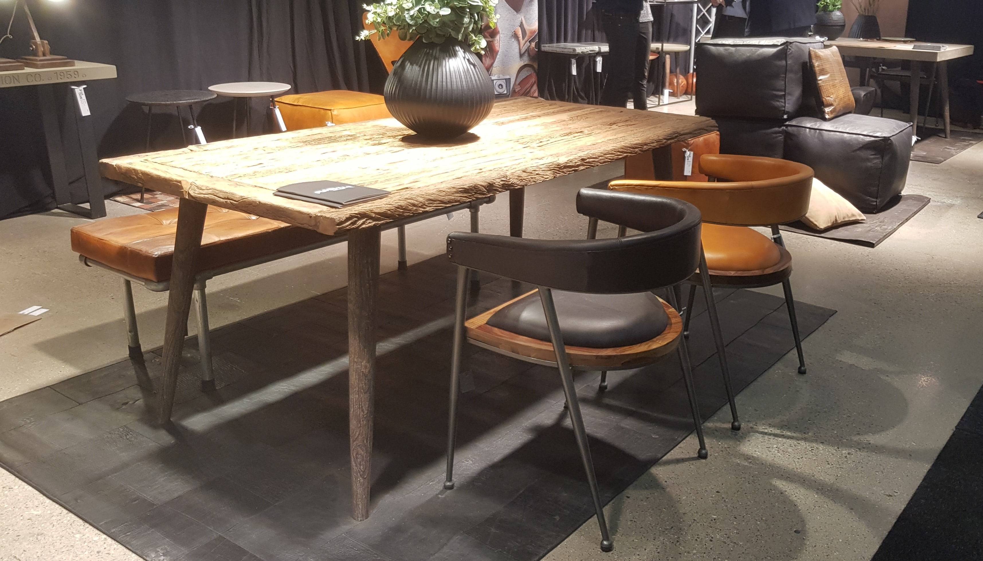 Examples of environmental awareness included FurhrHome, a Danish design firm with family-connected production in India such as this table made from driftwood.