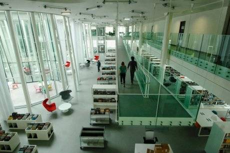 MONT DE MARSAN MEDIATHEQUE – Designed by archi5 “its transparent planes generously open to the view of the public” has dealt with its rather austere surroundings by imposing on the space a media library rather than taking advantage of its location near the France/Spain border and the pleasant climate that suggests to provide, for example, a landscaped, tree-filled park. The mention of generosity seems rather condescending in contrast.