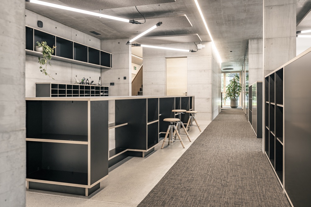 TRILUX has delivered a lighting solution for the new offices of Swiss architecture practice Atelier drü in Flums, in the canton of St. Gallen. Designed as a collaborative “New Work” environment, the project combines exposed concrete architecture with minimalist interior design, placing lighting and acoustics at the centre of the workplace concept. The office design features large concrete surfaces, modern furnishings, and integrated ceiling elements to create a balanced working environment where interior design, lighting and spatial planning work together to support comfort and collaboration.