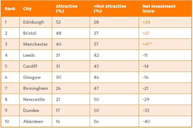 According to Morton Fraser, Leeds, Cardiff and Glasgow will all expect to move into a net positive investment score in the coming year after at least 30 per cent of investors felt they were attractive locations. They have also negotiated city region deals with the UK Government collectively worth at least £3bn.