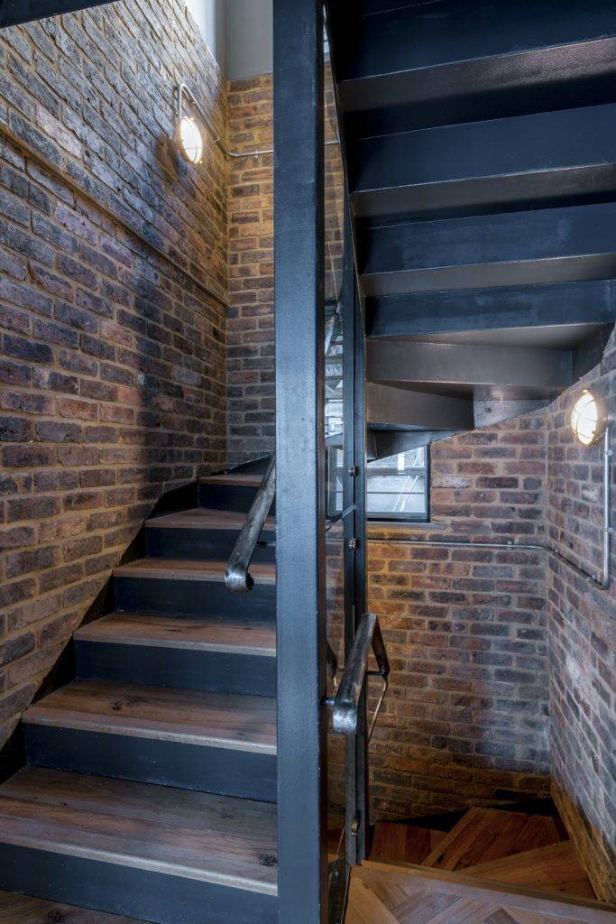 Selecting sustainable materials was extremely important to Bericote and as well as the reclaimed furniture, the space also utilises an array of natural materials such as brick slips which create a wonderfully atmospheric stairway and reclaimed antique Ted Todd flooring evident throughout.