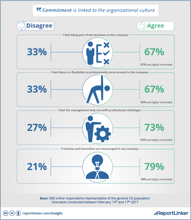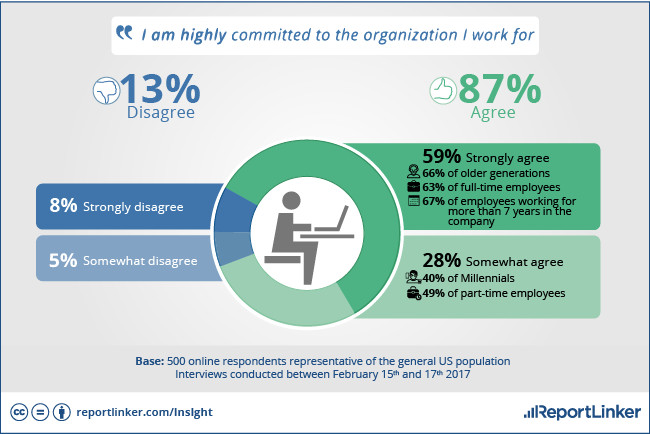 Similarly, 83 percent of US respondents who are offered opportunities to take on new challenges are more likely to stay with their employer. Seventy-nine percent of US respondents to the survey say they believe their employer encourages creativity and innovation. This, in turn, makes them more loyal: 78 percent of these employees say they’re committed to their employer.